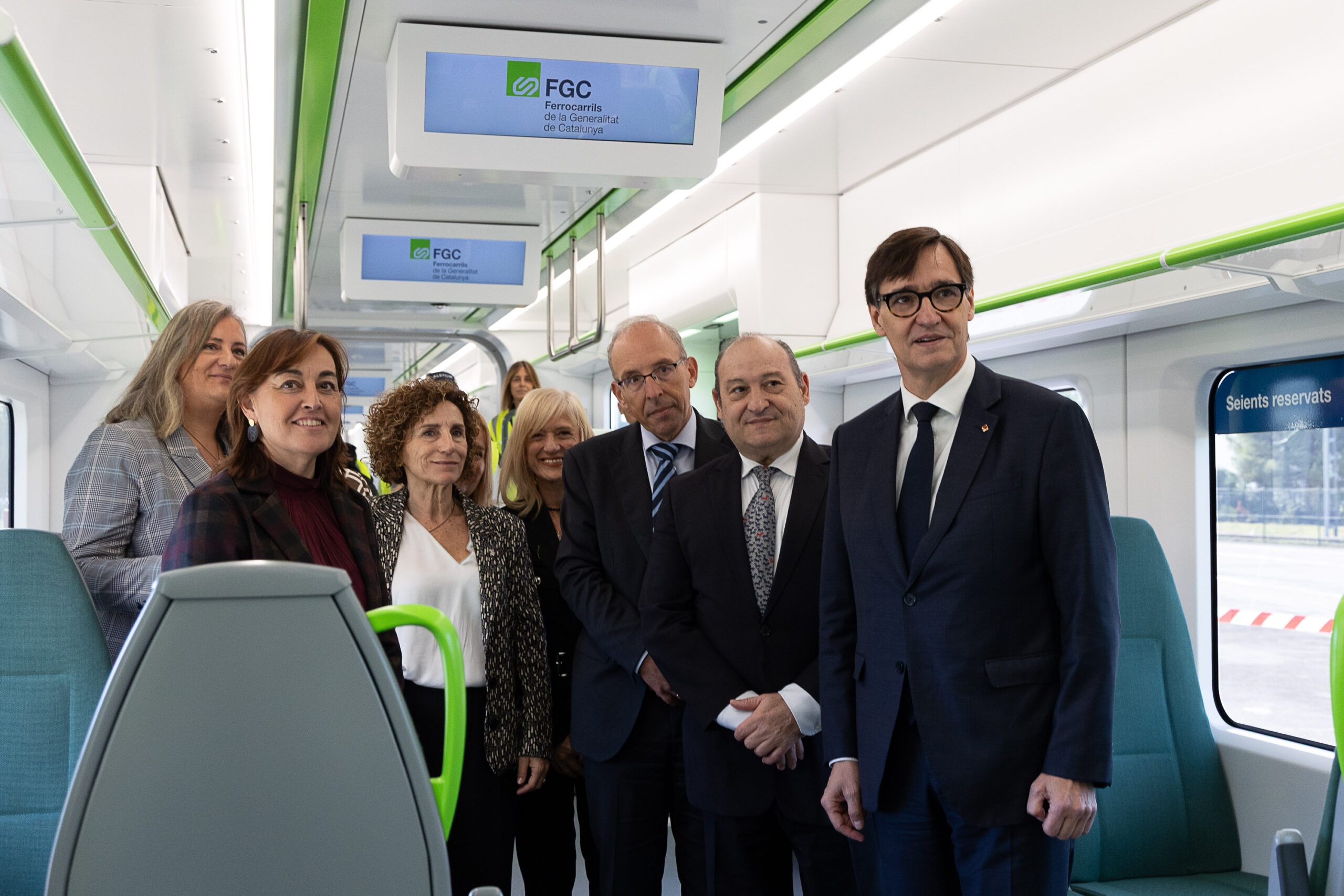 El Presidente de la Generalitat de Cataluña, Salvador Illa; la Consellera de Territorio, Vivienda y Transición Ecológica, Sílvia Paneque i Sureda; el Presidente de Ferrocarrils de la Generalitat de Catalunya (FGC), Carles Ruiz Novella; y el Presidente de Alstom España y Portugal, Leopoldo Maestu Miedes, han presentado hoy el primero de los diez trenes que conectarán el centro de Barcelona con el Aeropuerto Josep Tarradellas Barcelona-El Prat. Estos trenes, operados por FGC Mobilitat, comenzarán a prestar servicio entre finales de 2026 y principios de 2027.