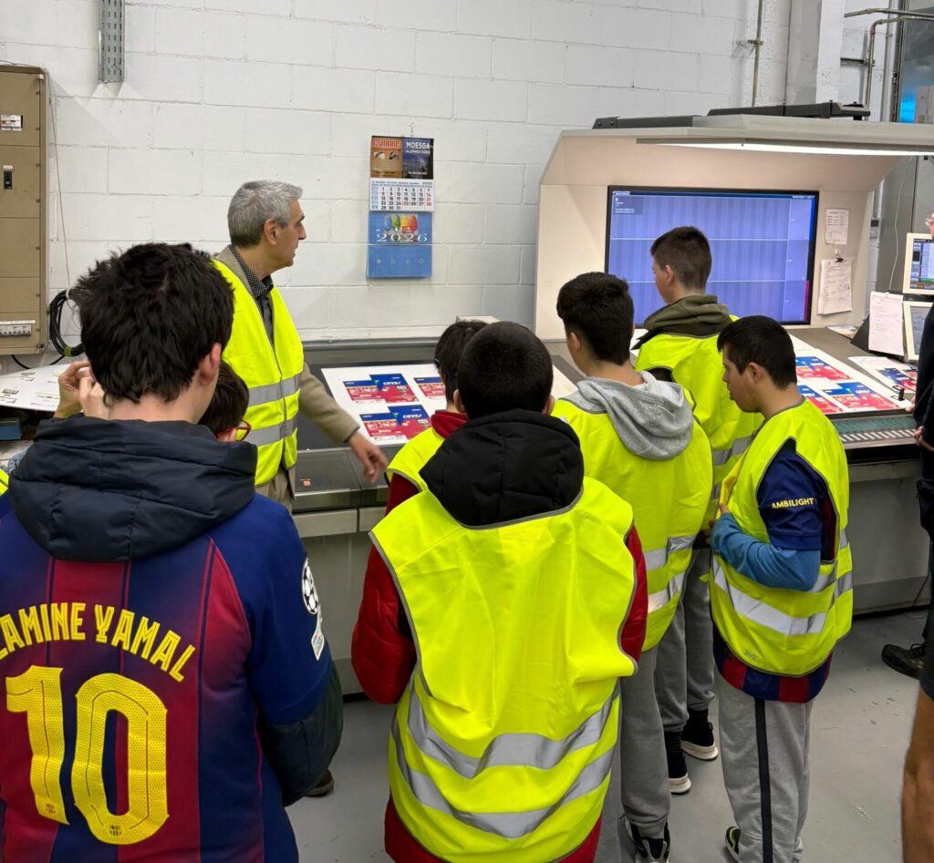 La jornada tuvo un enfoque formativo y permitió al alumnado seguir el proceso completo de producción gráfica. Entre otros aspectos, se explicó cómo se preparan los archivos, cómo el papel entra en máquina, cómo se construye el color y cómo se realizan los acabados finales. La visita incluyó también el recorrido por oficinas, el área de gestión comercial y administrativa, y el almacén, donde se detallaron distintos tipos de papel y su uso.