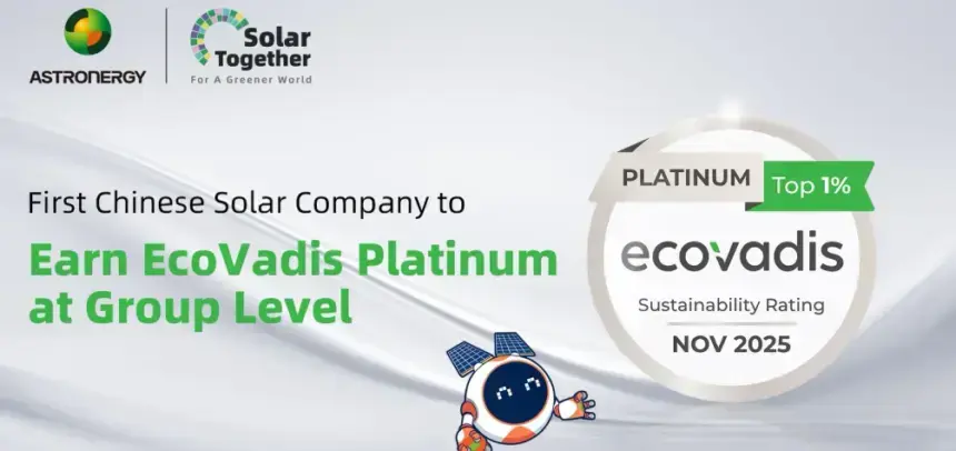 La empresa china Astronergy alcanzó un logro sin precedentes dentro de la industria solar al obtener la clasificación Platinum en la más reciente evaluación de sostenibilidad realizada por EcoVadis. Con una puntuación global de 86, la compañía se posicionó dentro del 1 % de las organizaciones mejor calificadas a nivel internacional, convirtiéndose además en la primera empresa fotovoltaica de China en recibir este reconocimiento.